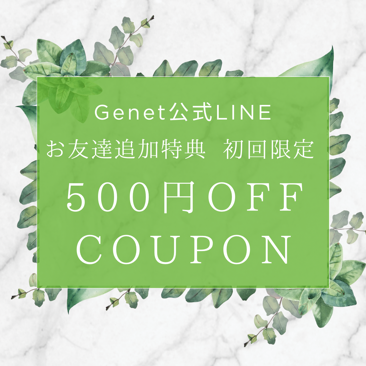 こんにちは、Genet公式LINEをはじめました!お友達追加していただいたお客様に初回限定500円OFFクーポンを配布しております☺️新商品のお知らせ📢やLINE限定クーポンなどの配信も予定してますので是非お友達になっ...